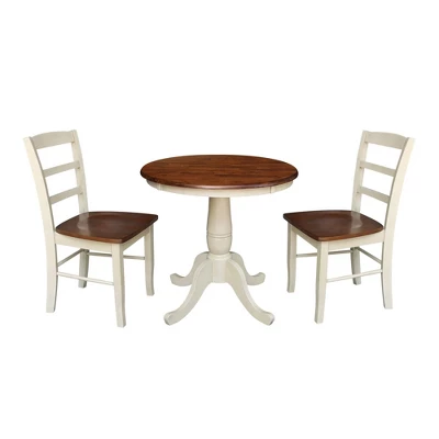 30″ Round Dining Table With Raised Legs And 2 Madrid Dining Chairs – International Concepts