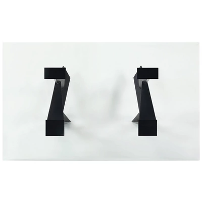 Reimagine you modern dining room around the grand, sculptural presence of this contemporary rectangular dining table. Impeccably designed for a contemporary home, the table features two structural supports with a cool, geometric look and feel. A black finish highlights the base to perfection. On top, a slab of clear glass includes a beveled edge for a classic finish and offers a lightened look that’s easy to maintain.