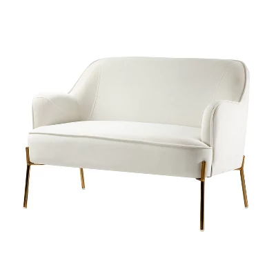 This loveseat chair will provide a fresh and pleasing look to your space and will be the center of attention with piped edges design. The medium density foam filling with a solid and manufactured wood frame provides comfort and support. Shown in a beautiful velvet upholstered fabric, this chair’s sleek lines, comfortable for skin touch, and features an on-trend solid hue that’s bound to blend in with your color scheme. Contemporary metal legs and a linear profile lend itself to serene comfort—perfect addition to small spaces. This small loveseat sofa for you and your loved one brings the soft and warm enjoyment at home. Whether you are looking for an intimate conversation with loved one or a place to stretch out in style, you will be well covered. This loveseat will have no problems blending into your home decoration with its natural and modern style and incredible durability. It’s the perfect pick for bedroom, living room and other scenes.Item Size: 43″Wx29″Dx32.5″H, Seat Size: 42″Wx20.5″Dx18″H.