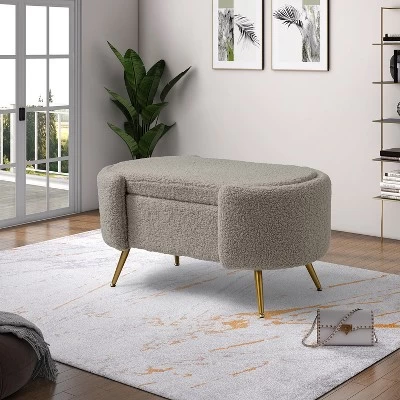 The unique shape, modern and stylish design, and furry upholstered with metal legs make this storage bench particularly eye-catching. Premium polyester fabric, which is very delicate to the touch and has no irritation to people who have sensitive skin and looks new even after long-term use. Upholstered with soft-touching and padded with high-quality foam, provides texture and comfort. Make your living space more organized with this revolutionary bench with a storage function. Metal legs and manufactured wood frame provide extra strength, it is spacious enough to store bedsheets, blankets, clothes, pillows, toys, books, and many other items. The furry bench, in a fashionable and simple style, is suitable for various scenarios. It is the best choice for your decorating a room or gifting to families and friends.Item size:39.4″W*19.7″D*18.9″H.