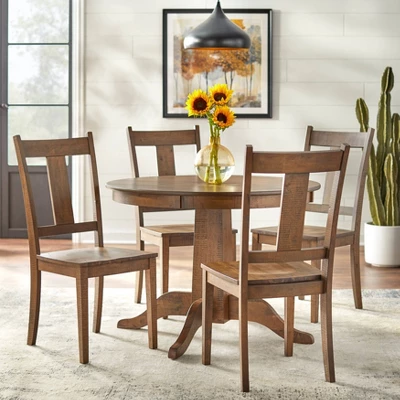 The Athens Round Dining Table from Buylateral is a warm and inviting place to linger for family meals. Finished in warm walnut and supported by a four turned pedestal leg style base. Constructed of MDF with veneer and solid rubberwood legs, this conversational table is ideal for your kitchen or dining room, seating up to four comfortably.