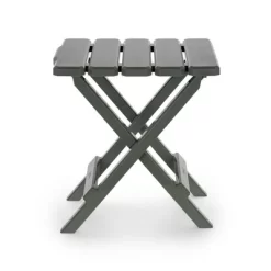 With a sturdy table by your side, you’re ready to work, play, or eat outdoors. The Camco Adirondack Plastic Folding Side Table is the perfect companion for trips to the beach, pool, campsite, or out tailgating and picnicking. You can even set up the outdoor table in your backyard or on your patio as another surface at your next cookout.This portable folding table goes anywhere you need it. The tabletop measures 12 inches by 14 inches and stands 15 inches tall. The narrow side table slips between outdoor chairs or in limited space between tailgating tents. Small but sturdy, this little side table can hold up to 30 pounds, making it great for laptops, drinks, snacks, potted plants, and more. When it’s time to move, just fold it up flat for easy storage.Durably built, this camping table is waterproof, rustproof, and resists rot and extreme heat. The Adirondack style table matches other Adirondack outdoor furniture and adds a rustic flare to indoor decor.Make sure there’s enough table space, whether you’re in your backyard or on the road, with the Camco Adirondack Outdoor Folding Side Table.