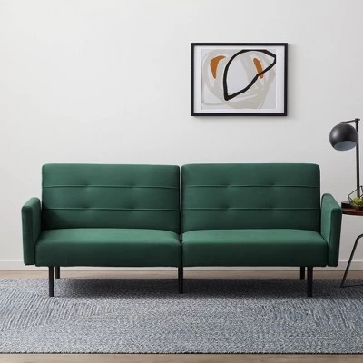The Lucid Comfort Collection Futon Sofa Bed with Buttonless Tufting is a comfortable and convenient piece of furniture perfect for visitors staying the night and rooms with limited space. This futon is roughly the size of a standard Twin mattress when in the flat position. The sturdy wood frame and strong legs provide a reliable 600-pound weight limit. Available in three different upholsteries in a variety of colors, you can match your futon with your décor. This product ships directly to your door packaged for easy assembly.