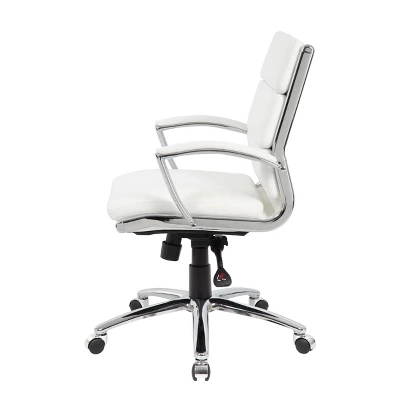 The CaressoftPlus executive guest chair in black with the metal chrome finish is as comfortable as it is handsome. This is the perfect guest chair for most any room or office and adds a pop of modernism to any room. The chair is made with a material called CaressoftPlus which is a trademarked vinyl that is an ultra-soft, breathable upholstery that looks & feels like leather, but more durable & easy to clean. It has been designed with a sturdy chrome cantilever base and has a weight capacity of 275 lbs.