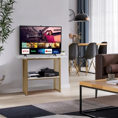 - Impressive Faux Marble Appearance: The console table is designed in faux marble appearance that combines aesthetic beauty with great practicality, delivering perfect visual effect and adding charm to your home. Plus, the gold steel frame creates a deluxe look to your living surroundings, whether in living room, bedroom and hallway, etc.