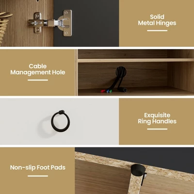 - 2 Cabinets & Open Shelf: The 3-position adjustable open shelf facilitates flexible storage of cable box, DVD player, remote control and other essentials. 2 enclosed cabinets with 2-position adjustable shelf provide you with ample private storage space, which also brings much convenience to organize your room.