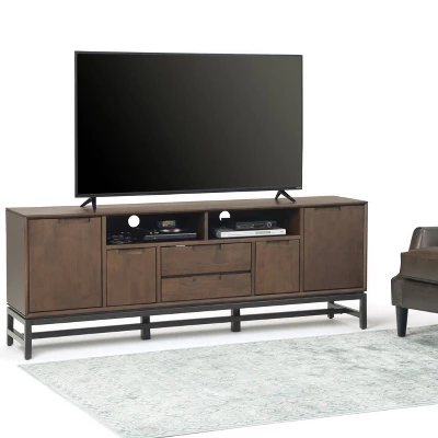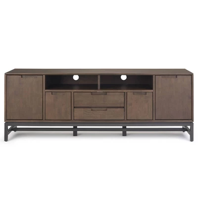 - Extra wide TV Stand is perfect for TVs up to 80 inches includes cord management cut-outs for easy installation of TV and media componentsModern Industrial style includes graphite Gray