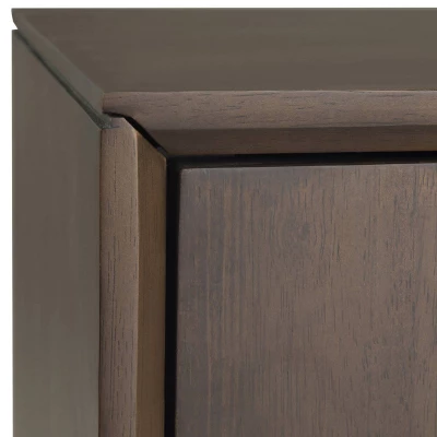 - 2 inch MetalHand-finished wood with a Walnut Brown stain and a protective NC lacquer to accentuate and highlight the grain and the uniqueness of each piece of furnitureFeatures 4 doors opening to storage compartments with adjustable shelves, 1 drawer, 1 flip down door and 1 open area for your media devices