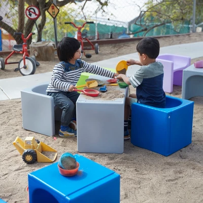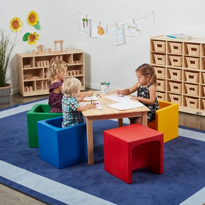 Tri-Me Adaptable Cube Chair offers the appeal of 3-in-1 fun. Children and adults can transform the cube chair from a 6” seat, to a 9.75” seat, or flip it to use as a table. The graduated sizes allow this plastic weaning chair to grow with your child, even using the tabletop surface as a stool seat later. This lightweight toddler chair features a curved seat-back design that hugs children keeping them comfortable, and encouraging proper posture for coloring, playing with building blocks, board games, or other seated activities. Kids benefit from alternative seating that allows for less fidgeting, more collaboration, and confidence in choosing their educational set-up. The one-piece design is crafted from durable UV-protected plastic with a textured surface and rounded edges for safety that won’t chip, crack or peel under typical conditions. This multipurpose indoor or outdoor furniture is designed for everyday use in the classroom or at home. The toddler chair is a great seating option for the kitchen, living room, or outside on the playground or patio. When learning time is over, chairs can be placed on top of each other using the built-in ridges to save valuable floor space; additional chairs are sold separately.