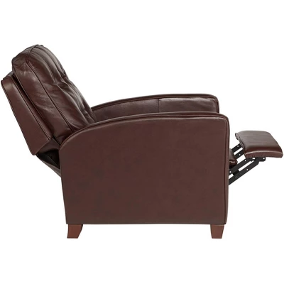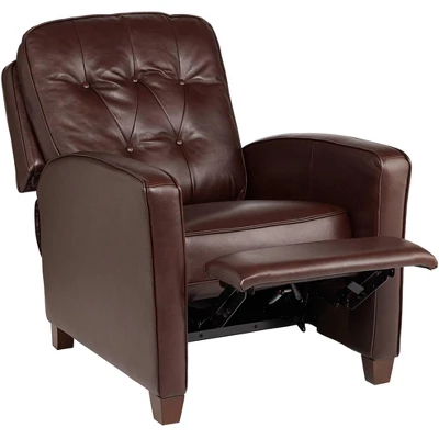 Choose this three-way recliner chair for the best blend of comfort and contemporary style. A clean look for any room, the chocolate colored leather fabric offers a traditional feel with a modern construction. Place it in your living room or den to add comfort and class.