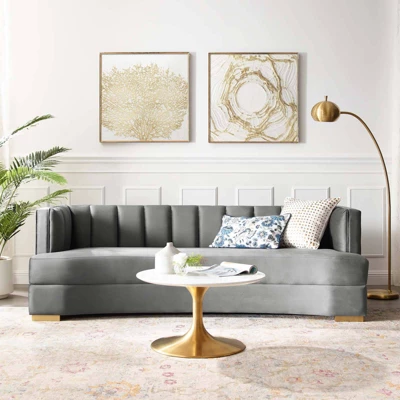 Encompass Channel Tufted Performance Velvet Curved Sofa Gray – Modway