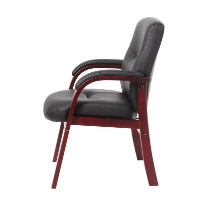 Our executive leather guest chair makes the perfect addition to any office, study, or waiting room. It is beautifully upholstered in eye-catching Italian leather, this chair is sure to impart an extra layer of sophistication while providing a comfortable seating experience. It features matching hardwood arms with easily removable pads, passive ergonomic seating with integrated lumbar support, and an overall weight capacity of 275 pounds. It pairs perfectly with our elegant executive seating chairs (B8901 and B8902).