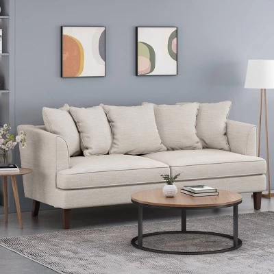Fairburn Contemporary Pillow Back 3 Seater Sofa Beige/Espresso – Christopher Knight Home