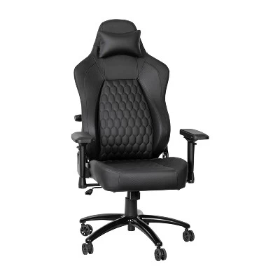 A new generation of gaming chair is on the horizon and the ergonomic, plush design of this upgraded chair with 4D armrests is the flagship model. Perfect for hardcore gaming sessions or long days at your desk, the extra supportive cushioned back and seat, adjustable lumbar support, and a removable, memory foam padded, headrest pillow keep you comfortable no matter the task ahead. With up to 135° of tilt, you can lay back for a quick catnap between missions or relax while taking a client call. Topping off the upgraded features of this desk chair are the 4D armrests that adjust up and down, forward and backward, left and right and spin on their axis for a completely tailored fit no matter your sitting position. High density foam seating is covered with soft and durable LeatherSoft upholstery with premium stitching available in 3 colors and holds up to 300lbs. static weight capacity. The pneumatic seat height adjustment gives you just the right seat height to maintain good posture during the rigors of extra long seated sessions. A glossy chrome base with racing style casters looks great while giving you smooth movement to reach any surface. Seat is spill-resistant and easy to clean with a damp cloth. Easily assemble within 30 minutes with the included tools and step-by-step instructions.