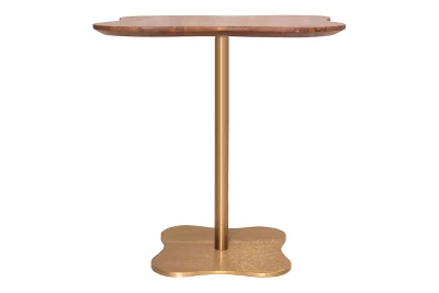 Solid acacia wood stained walnut topUltra modern top and base shapeIron base with gold electroplatingAlso available in marble (sold separately)