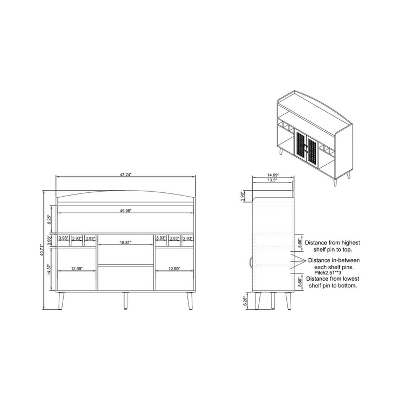 With a retro touch and a distressed walnut finish, this buffet server is the perfect furniture piece for a Midcentury style home. Place this buffet in your dining room to hold all your serveware and barware, complete with several open shelves, a center cabinet, and 6-bottle cubbies. Extra details such as flared and tapered legs and woven cane door fronts further lend to the vintage look.