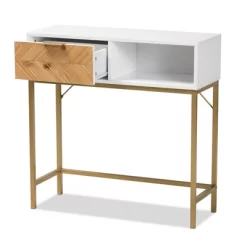 Bring a touch of Rustic Charm into your space with the Laredo Parquet Console Table. Featuring a reclaimed Parquet look with knotty pine and woodgrain patterns. The light complexion of the fir wood perfectly complements the dark finish of the brushed metal frame. The open airy frame will complete the look of any new or existing decor.