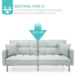 Best Choice Products Convertible Living Room Linen Fabric Tufted Split-Back Futon Sofa W/ 2 Pillows