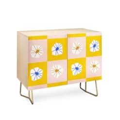 Maritza Lisa White Checkered Flowers Credenza – Deny Designs