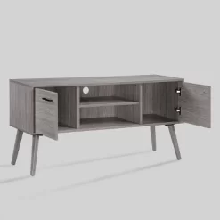2 Door Wood Closed Storage Console TV Stand For TVs Up To 50″ Brown – Saracina Home