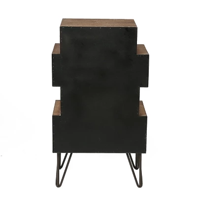 The rustic multi-drawer nightstand is an eye-catching piece that captures the essence of the apothecary-style chest. The one-piece wood body looks like different sized drawers stacked on top of each other. The face of each drawer has unique and visually appealing designs that add to the charm of the table, and make it versatile that coordinates and complements most interior designs. The chest flirts with the mid-century modern impression by its metal v-legs giving the side table a lift. The side table is a handy and striking addition to any room of the house, and is the ideal piece to hold things you need to keep close at hand. This accent chest also makes a great gift for weddings, housewarmings, holidays, and birthdays. It is so charming, you will want to keep it at home for yourself.Features: . . . . . Care: Use a microfiber cloth or a disposable electrostatic duster to remove dust. Use a paper towel or soft cloth to blot away liquid spills and condensation from drinks immediately. Wipe away the mess and immediately use a dry microfiber cloth to dry the wood and restore it back to its original finish. Specifications: Product Size: 33.27″ H x 18.9″ W x 12.2″ D Product Weight: 28.4 lbs. Drawer Size – Top: 3.88″ H x 12.8″ W x 8.69″ D Drawer Size – Top Middle: 4.25″ H x 16.75″ W x 10.6″ D Drawer Size – Bottom Middle: 5.19″ H x 13.63″ W x 10.6″ D Drawer Size – Bottom: 5.5″ H x 16.75″ W x 10.6″ D Weight Capacity: 45 lbs. Product Color: Natural Wood, white, green, brown