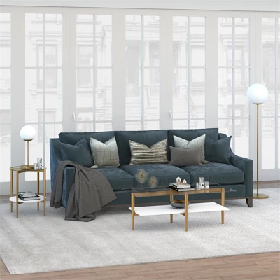 This mid-century inspired side table is the perfect pick for your living room or den ensemble. Its base features four tapered legs connected at the center. The top is a transparent tempered glass which shows off the architectural connection and carries the rectangular design through the frame. The lower shelf is made in a shiny white lacquer, playing off the tempered glass in shape and sheen. It’s finished in gold making it classic and neutral enough to work in any space.Features : Hand crafted gold finish is applied to the steel frame. Tempered glass top and white lacquer shelf.Clean with a soft, dry cloth; no harsh chemicals or abrasive cleaning materials.Features easy assembly.Weight capacity can support up to 40 LBS.Premium materials have been used in the making of this productSpecifications : Product Weight : 16.7 lbsFrame Material : Metal
