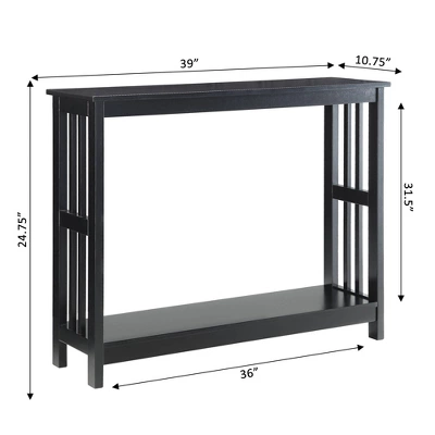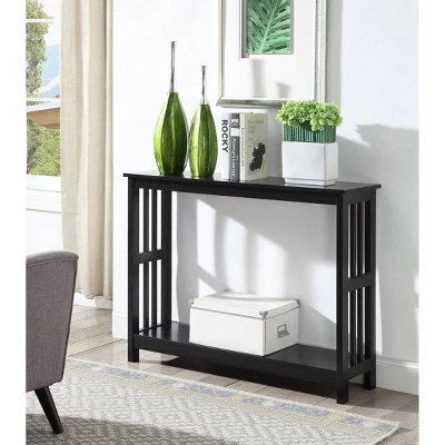 Refreshing your space is as easy as adding the Mission Console Table from Convenience Concepts. This rectangle console table features open side panels decorated with vertical bars for a stand-out look no matter where you add it. Place in your entryway for a spot to drop your keys, wallet and bag after a long day, or add it to your living space and display vacation photos, awards, fresh flowers or seasonal decor — whatever suits your personal style.