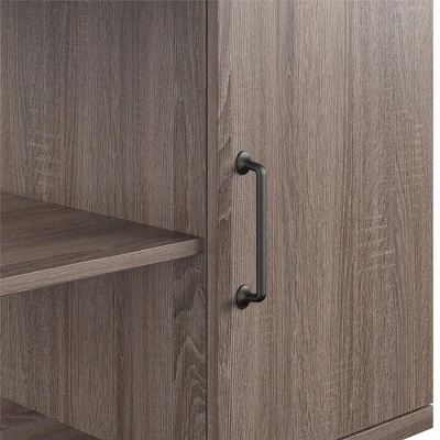 Add valuable storage to your home office or living room without taking up too much space with the Room & Joy Panama 3 Shelf Bookcase. The finish on the laminated particleboard pairs with the powder-coated metal hairpin legs for a fun retro look. Display decorations and family photos on the top surface and keep your book collection organized on the 2 open shelves. Behind the door are an adjustable and fixed shelf for added storage for extra office supplies or books. The Bookcase ships flat to your door and requires assembly upon opening. Two adults are recommended to assemble. Once assembled, the Bookcase measures to be 28.5”H x 31.7”W x 17.5”D.