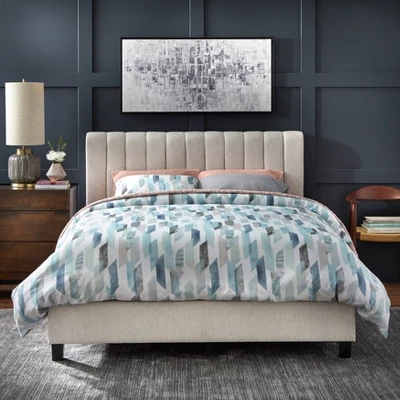 - Stylishly channeled headboard is plushily padded