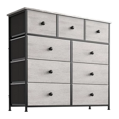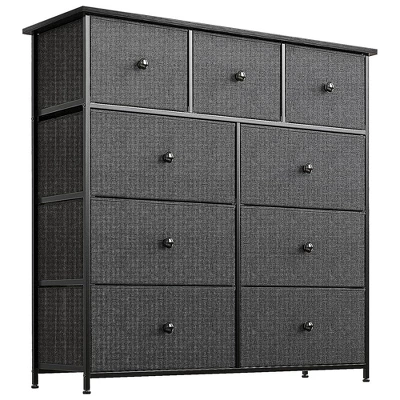 It’s more than just a pretty face. The sleek design of this REAHOME 9 Drawer Dresser will pair well with your existing furniture without sacrificing utility.With 9 drawers, 3 small and 6 big, this minimalist-designed storage chest provides all the room you need to store anything from clothes to home goods. The steel frame, wooden countertop, and fabric drawers provide a sturdy structure made from reliable materials. Adorn the top 39-inch waterproof surface with your favorite decor items. The adjustable feet and wall attachment add a level of increased safety, especially if you have climbing pets or kiddos.This organizer is ideal for storing activewear, blankets, outerwear, socks, and other clothing or home goods. Position this piece in entryways, bedrooms, living rooms, nurseries, hallways, offices, or any place that needs an injection of style.Elevate the sophistication of your space with a modern piece that is sure to impress. This 9 Drawer Storage Organizer from REAHOME has the functionality you need from a dresser while also being easy on the eye.