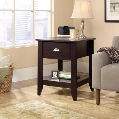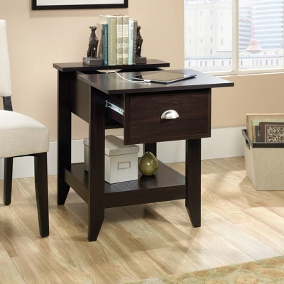 What’s better than a side table with a ton of storage and a spot to charge your phone? Not much! Check out this SmartCenter side table from the Shoal Creek collection. The top slides open to reveal a charging station with a power strip containing two outlets and two USB ports. The charging station is ventilated to improve air flow and extend component life. The top provides full-length cord pass-through for easy table-top charging of cell phones, laptops and tablets. Other features include full extension ball bearing slides, a cord management system, and an open shelf for additional storage. This versatile piece of furniture can be used anywhere in the home, even as a night stand. Finished in Jamocha Wood, this tech savvy end table will get you charged up and ready for the day.