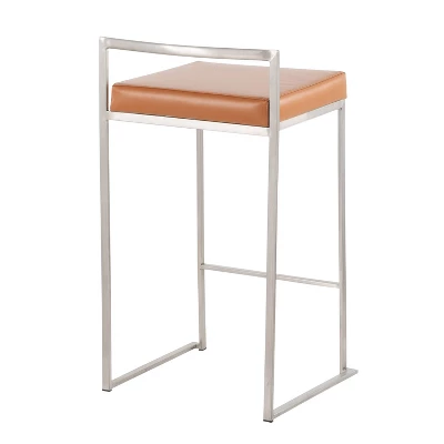 Set Of 2 Fuji Stackable Counter Height Barstools Leather/Steel – LumiSource