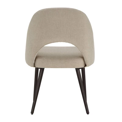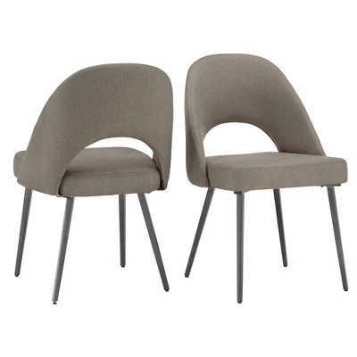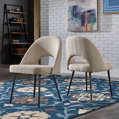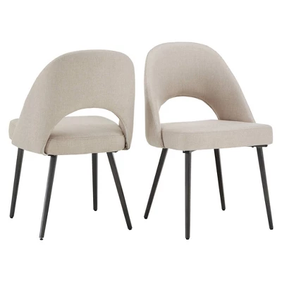 Add some statement making, modern style to your kitchen or dining room with the Ragan Black Finish Fabric Upholstered Dining Chairs (Set of 2) from Inspire Q. This styled and comfortable chair offers guests and family a cozy spot to dine with fabric cushioned seat and chair back. The chair backs feature a half-circle cut out portion that displays obvious retro fashion, while the simple and thin black legs tie the contemporary style of these chairs together perfectly. Fabric options are in neutral colors. Choose between beige or dark grey to compliment your dining room.